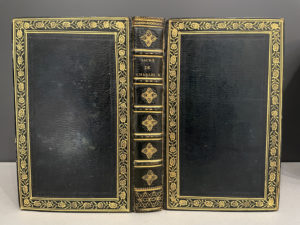 nuit de l'époque, dos à 5 nerfs ornés, titre, fleurons et roulettes dorés, plats bordés de filets et d'une large roulette florale, et d'une roulette à froid, filet aux coupes, frise grecque aux chasses, tranches dorées (qq. frottements, petit choc au bord d'un plat ; rousseurs). On joint : - MÉJAN (Maurice). Histoire du procès de Louvel, assassin de S.A.R. Mgr. le Duc de Berry. Paris, Dentu, 1820. 2 vol. in-8, cartonnage époque à la Bradel, bleu marine, pièces de titre et de tomaison rouges, non rogné (qq. frott. ; brunissures). - CHATEAUBRIAND (François-René de). Mémoires, lettres et pièces authentiques touchant la vie et la mort de S.A.R. Monseigneur Charles-Ferdinand d'Artois, fils de France, Duc de Berry. Seconde édition. A Paris, chez Le Normant, 1820. In-8, [2] f., II-302 p., cartonnage ancien, titre manuscrit au dos (auréoles brunes étendues). Soit 4 volumes