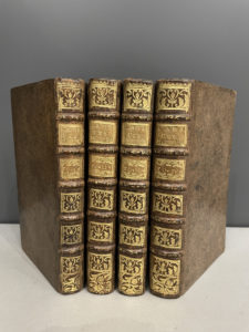 époque, dos à 5 nerfs, pièces de titre et de tomaison blondes, roulette dorée aux coupes, tranches rouges (des coins frottés, petit trav. de vers le long d'un caisson, trace de cachet gratté aux titres, lég. brunissures, sans le frontispice). Seconde édition, revue et corrigée par l'auteur. Sans les 5e et 6e parties parues en 1760. La 4ème partie est précédée d'une page de titre particulière : « Précis de l'organisation, ou Mémoire sur les états provinciaux. À Avignon, 1759 ». Note manuscrite ancienne sur l'auteur, sur un feuillet inséré après le titre du t.1.