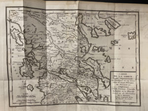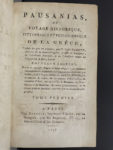 [Grèce]. PAUSANIAS ; GEDOYN (Nicolas). Pausanias, ou Voyage historique, pittoresque et philosophique de la Grèce A Paris, chez Debarle, 1797. 4 volumes in-8, demi-maroquin à longs grains vert bronze, dos lisse orné, titre et tomaison dorés,...