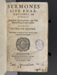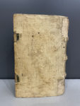nerfs doubles, titre ms. sur étiquette, plats décorés de filets, d'une roulette composée de portraits en médaillons, et de cinq fleurons au centre, le tout à froid, fermoirs (dos grisé, piq. de vers sur un nerf et au plat inf., prolongées au contreplat et touchant qq. lettres des derniers ff. sans gravité, rousseurs). Nouvelle édition allemande de sermons et lettres composés au Moyen-Âge par Pierre de La Palud (vers 1275-1342), théologien dominicain, légat du pape en Flandre, patriarche de Jérusalem, et auteur d'importants écrits dont une concordance de la Somme théologique de saint Thomas et un Commentaire des Sentences de Pierre Lombard. Provenance : Caspar Stecher (ex-libris ms. ancien au contreplat) ; couvent de capucins (ex-libris ms. ancien au titre) ; cachet XIXe s. au titre. (VD17 3:316000T).