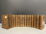 nerfs, pièces de titre et de tomaison, caissons ornés (défauts d'usage, trav. de vers sur un plat, un mors découvert, mouillure aux fx-titre et titre du t.6, et sporadique au t.3, accidents sur un fx-titre et au dernier f. du t.2, 1 pl. mq. à l'introd.). Troisième et dernière édition, la plus complète. Amplement augmentée par rapport aux deux précédentes, elle est illustrée de 55 cartes et plans dépliants hors-texte, gravés sur cuivre. Les deux volumes comprenant l'introduction, parus en 1752, aux reliures similaires mais pas identiques, ont été joints aux 13 volumes du corpus, aussi les pièces de tomaisons de celui-ci ont-elles été corrigées. Il manque la carte générale au 1er volume d'introduction. Curieusement, une carte supplémentaire (Guatemala par Sanson) a été reliée dans le tome XI. Provenance : Eugène de Froberville, 1790-1871, ethnologue, membre de la Société de Géographie (cachet répété au v° des titres) ; cachets de collèges jésuites aux titres des 2 vol. d'introd., et étiq. aux faux-titre.