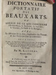 basane havane mouchetée époque, dos à nerfs, pièce de titre rouge, caissons ornés (défauts dont coiffe de tête arasée, coins ém., rousseurs). Frontispice gravé par C. Simonneau d'après A. Coypel. On joint : LACOMBE. Dictionnaire portatif des beaux-arts ou abrégé de ce qui concerne l'architecture, la sculpture Paris, Herissant, 1759. Fort in-8, veau blond début XIXe s., dos à nerfs orné, pièce de titre grenat, double filet doré aux plats, tranches jaspées (qq. frottements). Provenance : Prix de l'École Centrale de Rouen, an VIII (supra-libris doré). Soit 2 volumes.