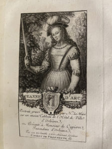 semé de fleurettes et fleurs de lys, pièce de titre noir peut-être rapportée (trav. de vers sur les mors, qq. salissures en marge en début de vol.). Edition illustrée d'un plan d'Orléans dépliant gravé sur cuivre et d'un portrait de Jeanne d'Arc hors-texte, gravé par Le Mire. On joint : [POLLUCHE (Daniel)]. Essais historiques sur Orléans Même ouvrage, même édition, reliure veau havane marbré de l'époque, dos lisse et orné, pièce de titre fauve (trav. de vers au mors inf. et plat sup., une coiffe frottée, nom d'auteur au stylo et cachet sur la page de titre ; complet de la gravure, mais sans le plan d'Orléans). Soit 2 volumes.
