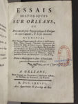 [POLLUCHE (Daniel)]. Essais historiques sur Orléans, ou description topographique & critique de cette Capitale, & de ses environs. A Orléans, chez Couret de Villeneuve, 1778. In-8, VI-XII-209 p., pl., demi-basane lég. post. dos lisse orné d'une...