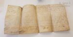 - Acte notarié, daté de 1740, par le notaire royal de la ville de Sélestat. Manuscrit sur vélin, in-4 oblong (dim. 45x21cm), pliures.