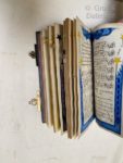 Manuscrit composé de 123 feuillets, comprenant différentes prières, chacune présentée par un frontispice aquarellé sous serpente, certaines avec airs notés, et l'ensemble se termine par une table des matières indiquant le nom de la prière, l'auteur et son époque.