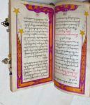 Manuscrit intégralement enluminé à l’aquarelle, terminé le 1er mars 1836, de format in-8 relié plein chagrin, dos à nerfs, avec fermoirs métalliques à motifs d'étoiles, gardes de soie rose, tranches dorées.