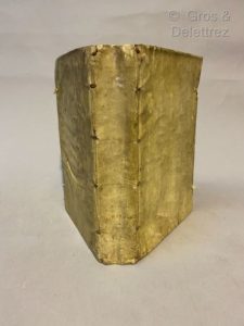 Manuscrit daté de 1604 relié dans un plein vélin à rabats avec traces de lacets.