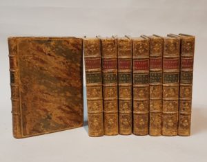 Chez l’auteur David, 1781, 8 volumes (sur 9) petit in-4 reliés plein veau, dos à nerfs ornés, pièces de titre et de tomaison. 634 planches (sur 700) gravées en taille-douce par David avec leurs commentaires de Maréchal.