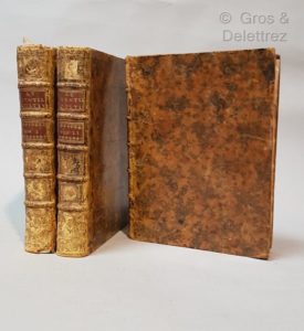 Paris, Bordeaux, 1761-1763, 6 premiers tomes (sur 8) en 3 volumes in-8 reliés pleine basane époque épidermée, dos à nerfs, double pièce de titre, quelques accrocs, erreur dans la tomaison des reliures.