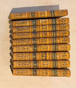 Walter SCOTT. Ensemble de 2 titres en 9 volumes reliés uniformément en demi-basane, reliure de Rivière à Condom: