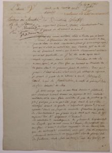 BARRAS - DIRECTOIRE EXECUTIF Signature autographe, sur une lettre de « l'Ex-adjudant général Vatar », Auch, 6 ventôse an 4 (25 février 1796). 1 p.1/2 in-4. « L'ex-adjudant général Vatar » demande de l'avance en fonction des services qu'il a...
