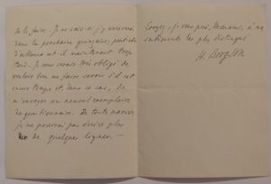 BERGSON (Henri) (1859-1941) Lettre autographe signée, Paris, 24 octobre 1922. 2 pp. ½ in-16. « Il y a déjà déjà plusieurs semaines que vous avez bien voulu m'inviter () à donner mon opinion sur certaines questions formulées par Monsieur...