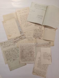 Parmentier et indique « () et que nous sommes obligé de nous conformer a ce qui a été décidé par le comité () » le 21 janvier, Il demande à un confrère de lui faire parvenir le mémoire faisant état des dépenses du chirurgien de la gendarmerie (Majault) : « on lui passe une somme pour payer l'approvisionnement et dans la crainte que cette somme ne soit pas suffisante, il se restreint pour les quantités ». ; BEAUMONT (Elie de ) lettre autographe signée à M. Pitois libraire, 1 p. 2/3 in-4, adresse. Commande de 5 ouvrages ; BERTHOLLET (Claude-Louis) lettre autographe signée, à Madame de Vineux, Aulnay, 25 juin 1789. 2 pp. in-4. Adresse, plis d'envoi. La lettre est commencée par l'épouse du chimiste qui rassure Madame de Vineux quant au fils que celle-ci a laissé en garde chez eux et Berthollet prend la suite de la lettre pour parler des affaires publiques : « le roi () a annullé les arrêtés de l'assemblée nationale ; mais elle paraît disposée à ne pas plier () l'archevêque de paris qui lui a été contraire a été fort maltraité du peuple à versaille même. Les esprits sont extrêmement échauffés et le moment est bien redoutable. » ; DULONG (Pierre Louis) Lettre autographe signée, Paris 1829, 2 p. in-8°: il a reçu le dessin du manomètre et donne la composition de la poudre qu'il a reçue ; DUMAS (Jean Baptiste) 4 Lettres autographes signées à M. Bérard, professeur de chimie, 13 p. de formats divers; lettres amicales et familiales. Dans la lettre débutant par « Mon cher parent et collègue » en 4ème page se trouve environ 10 lignes autographes signée de Antoine Jérôme Balard ; FRESENIUS (Carl Remigius) 2 Lettres autographes signées, Wiesbaden, 10 décembre 1881. 1 p. in-8. En-tête du Chemisches Laboratorium. Il répond à la demande de recommandation d'un confrère à la recherche d'un jeune homme qui aurait terminé ses études de chimie en lui conseillant de faire paraître une annonce dans la presse spécialisée en chimie. Dans la seconde lettre, du 6 avril 1888 (Wiesbaden, 1 p. in 8°) en allemand cette fois, il est question d'un problème qu'il arriverait à résoudre grâce à un tableau de couleurs pour des analyses qualitatives et des analyses spectrales particulièrement rares. HASSENFEATZ (Jean-Henri) lettre autographe signée, (s.l.n.d.) 2 pp. in-4. Adresse, plis d'envoi. Il regrette qu'un cours de minéralurgie l'empêche : « de [se] trouver mardi prochain chez vous pour affirmer que j'ai connaissance de l'impression sur porcelaine des planches en tailles douces » et lui demande la possibilité de remettre leur rencontre ; JUSSIEU ( Antoine Laurent de) Lettre autographe signée. à M. Lemaont (s.d.) 1 p. in-8, adresse: il a envoyé son atlas au ministère et remercie de la communication de ses toiles pour l'illustration et l'organisation végétale pour un cours public ; THENARD (Louis Jacques) Lettre autographe signée, (s.l.) 16 juillet 1852, 1 p. in-8°: recommandation.