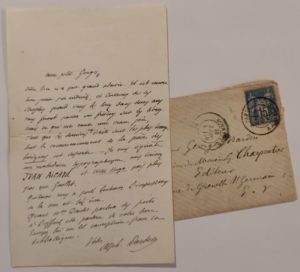 DAUDET (Alphonse) (1840-1897). Lettre autographe signée à Georges Nardin (s.l.n.d. Paris, 1881) 1 p. in-12°. Enveloppe jointe. Il lui donne son avis sur son ouvrage Les Horizons bleus « Votre livre m'a fait grand plaisir. Et est encore bien jeune...