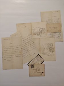 17 mars 1874, il se propose de lui offrir un exemplaire de ses Odes Funembulesques et le félicite sur la qualité de son sonnet, il lui proprose une entrevue pour en parler. Le 17 juin 1874, il félicite G. Nardin « Vous avez fait des progrès de géant et bien vite ! ... » ; DAUDET (Alphonse) (s.d.) il lui propose un fauteuil d'orchestre et lui demande de lui raconter ses impressions sur les deux pièces. Lettre (s.d.) il lui donne deux places de théâtre, dont l'une pour voire une « pièce de M. Porto-Riche » celui-ci doit lui faire part de ses sentiments et Carte (s.l.n.d.) « Donnez-moi de vos nouvelles » ; PRUDHOMME (Sully) le 31 aout 1881, il le remercie et le félicite pour son volume Les horizons Bleus et précise « Votre maître Théodore de Banville (qui est à tant de titre le nôtre à tous) n'aura pas à renier son élève » et Carte (s.l.n.d.) remerciements.
