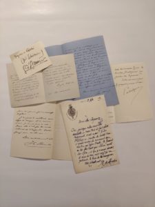 prélever mes 5000 francs en deux ou trois mois sur la recette quotidienne () ; ANNUNZIO (Gabriele d') Billet autographe signée à son impresario M. Schürmann, (s.l.n.d.). 1 p. in-16. Place pour une pièce ; BLANCHE (Jacque-Emile) Lettre autographe signée, Londres, (s.d.) 2 pp. in-12, donne un conseil « Je crois en cas, qu'un livre français serait mieux pour lui plaire qu'un ouvrage en anglais. () » ; HEREDIA (José-Maria) Lettre autographe signée à M. Lapauze, Paris, 12 décembre 1903. 1 p. in-8, amusante lettre, il lui répond « Oui, puisque cela vous parait être agréable - mais tout à fait platoniquement, n'est-ce pas ? Je suis président ou membre de comité d'un si grand nombre de monuments que mis l'un par-dessus l'autre, ils feraient un tas plus haut que Pélion monté sur Ofra, et que je n'aurais jamais, à moins de vivre aussi vieux qu'un patriarche, le loisir de les inaugurer. » ; LABICHE (Eugène) Lettre autographe signée, Paris, 29 novembre 1875. 3 pp. in-16. En-tête à ses initiales. Labiche enthousiaste « Je ne veux pas attendre un jour pour vous remercier de ce témoignage de sympathie et pour féliciter en vous le Poëte et le peintre, car vous avez tous les droits de vous parer de ces deux titres » ; PALÉOLOGUE (Maurice) Lettre autographe signée, Paris, 22 mars 1939. 3 pp. gd in-12. En-tête « Académie Française ». Belle lettre. Il donne son avis « Du point de vue historique, archéologique, littéraire, moral, philosophique même, l'oeuvre est d'un intérêt puissant & qui ne fléchit pas. C'est à la fois tout le décor pittoresque & toute la vie intime de la civilisation romaine. Plusieurs fois, en vous lisant, j'ai pensé à Flaubert & aux déceptions cruelles que votre impeccable réalisme lui aurait prodigées. Non certes, il n'aurait plus écrit à George Sand : « Je donnerais la moitié de ma fortune pour m'être promené un soir dans Suburre, quand les tambourins résonnaient dans les tavernes & que les torches flamboyaient aux portes des lupanars ! ».