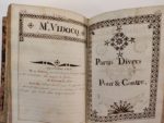 de 1833, entièrement rédigé et décorée à l'encre brune, quelques indications à l'encre rouge. Les deux volumes portent le monogramme « FJ », les pages sont numérotées à l'encre rouge. Le premier volume débute par une préface, vient ensuite 5 grands chapitres : le clergé, empereurs rois & têtes couronnées, le ministère, ministres et préfets de police, la diplomatie, enfin la table des matières. Chapitre « ministres » p483 dans un sous chapitre consacré à M. Thiers : « 16 aoust 1831 La Révolution de juillet est fait au profit du quart et du Thiers ». Ajouté à ce volume 2 pp ; « biographie manquant au Figaro ». Le second volume contient 9 chapitres : pairie & pairs, la chambre & les députés, agents du ministère-public, agents de police, partis divers pour & contre, Journaux & journalistes, peuples, savants & hommes de lettres, bigarrures. A la fin du volume 2, dans le chapitre bigarrures, nous notons 13 pp. vierge d'annotation, mais décorées à la main. Dans le chapitre Bigarrures p 515 « 4 mai idem. C'est le peuple qui a faim, mais c'est le budget qui mange » etc