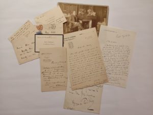 développée et demande à recevoir des épreuves. Le 21 novembre, il le remercie de l'envoie d'un ouvrage ; CLAUDEL (Paul) Lettre autographe signée, Paris, (s.d.) 1 p. in-12. Il indique qu'il sera toujours heureux de revoir son correspondant et précise qu'il le trouvera facilement au ministère ; GERALDY (Paul) 2 Lettres autographes signées, Paris, (s.d.). 2 pp. in-8. En-tête à son adresse et « Maison de la Presse ». Vendredi, il décline une proposition « j'ai tout le contraire de ce qu'il faut pour traduire, pour adapter Mon travail est laborieux () je crois que je ferais mal ce que vous me proposez là. () » et au 3 rue Martignac (s.d.), Géraldy répond « () l'honnêteté de l'écrivain consiste à ne rien écrire que de ce qu'il connait. () » ; PORTO-RICHE (Georges de) lettre autographe signée à Paul Bourget, Paris, septembre 1916. 2 pp. in-8. Correspondance amicale, il lui souhaite un bon rétablissement.