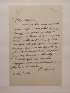 MERIMÉE (Prosper) (1803-1870) Lettre autographe signée, (s.l.) 2 novembre 1860, 1p. in-8°. Il demande une faveur « Vous avez bien voulu me permettre de vous (intéresser) à mon protégé Antoine Piquaud, commissionnaire qui sollicite la...