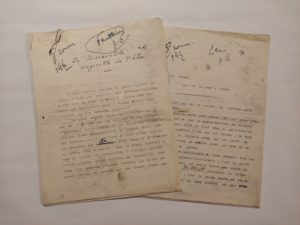 sollicité le plus vivement l'ingéniosité des biologistes...il comporte encore bien des inconnues... Du moins une notion émerge-t-elle... Celle de la bisexualité de l'être... Le sexe de l'individu nous apparaît comme le résultat d'une sorte de conflit entre deux tendances adverses dont l'une finit par prévaloir... » Puis il étudie les changements de sexe, les hermaphrodites ; Tapuscrit signé avec corrections autographes, 9 pp. in-4 intitulé Les hommes qui ont le coeur à droite : « l'inversion positionnelle du coeur entraine tout naturellement l'inversion fonctionnelle... Tous les autres organes sont inversés... ».