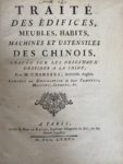 William CHAMBERS Traité des édifices, meubles, habits, machines et ustensiles des Chinois Paris, Le Rouge, 1776. In-4, demi-veau brun à petits coins, dos à 5 nerfs orné (Reliure pastiche moderne). Cordier, 1570 /// 30. Curieux ouvrage dû à...