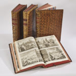 l'époque). Cordier, 45 /// I. (2f.)-VIII-LII-III-590 (mal chiffrées 592) / II. (2f.)-IV-723 (mal chiffrées 725) / III. (2f.)-IV-564-(2f.) / IV. (2f.)-II-518 (mal chiffrées 520). Édition originale de cet incontournable ouvrage sur la Chine dû au père Jean-Baptiste Du Halde, jésuite, littérateur et géographe qui fut entre autres chargé par la Compagnie de Jésus de publier les Lettres des missionnaires, mission dont il s'acquitta du IXe au XXVIe volume. Son Histoire de la Chine est le premier ouvrage qui fit connaître ce pays d'une manière un peu exacte. Il y aborde tous les sujets, aussi bien la géographie que les moeurs, l'économie, les traditions, la religion, la société Une vignette de titre répétée gravée par Baquoy d'après Humblot, 5 en-têtes par Humblot gravés par Guélard et Maisonneuve, 11 planches hors texte gravées par Baquoy, Fonbonne, Haussard et Maisonneuve, d'après Humblot et Lucas, dont 10 à pleine page ou à double page, 43 cartes hors texte dont 41 à pleine page ou à double page, 10 plans, une planche de musique et 4 lettrines. Très bel exemplaire, parfaitement complet, dans une reliure contemporaine en parfait état. Déchirures à la pliure de 3 cartes, quelques feuillets un peu roussis.
