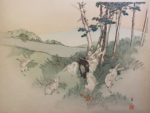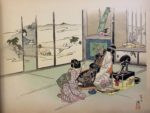 compositions en couleurs à pleine page par Kou-bo-ta Tô-soui, Ka-no Tomo-nobou et Kadji-ta Han-ko sous la direction de P. Barbouteau. Chaque volume contient 18 doubles pages dont seules les pages imprimées de texte sont numérotées 18-(1f.). L'impression a été faite à Tokyo. Les planches sont protégées par de fines serpentes qui ont parfois un pli. Ouvrage très finement illustré par des artistes qui avaient compris l'esprit de ces fables « en sorte que leurs illustrations représentent réellement des scènes de la vie au Japon aussi bien que si le fabuliste eût été japonais ». Un des 190 exemplaires tirés sur Tori-noko (n° 63). Couvertures un peu salies.