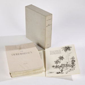 Victor SEGALEN Les Immémoriaux. Paris, Les Amis de Victor Segalen, 1948. In-4, en feuilles, chemise et étui. Monod, II-10234 /// (5f.)-226-(3f.). 45 pointes-sèches de Jacques Boullaire dont le frontispice, 11 grandes têtes-de-chapitre et 33 dans...