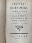 VOLTAIRE Lettres chinoises, indiennes et tartares à Monsieur Paw, par un bénédictin. Londres (Amsterdam), s.n., 1776. In-8, demi-chagrin bleu, dos lisse orné (Reliure de la fin du XIXe siècle). Bengesco, 1859 / Quérard, I, 506d ///...