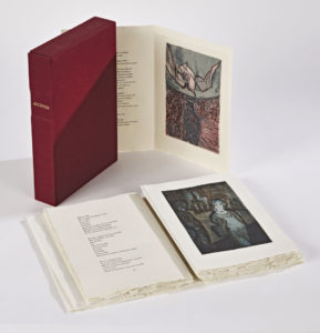 Guillaume APOLLINAIRE Alcools. Paris, Les Cent-Une, 1986. In-4 (18,3 x 28 cm), en feuilles, emboîtage. Cent Unes, n° 33 /// (2f. bl.)-(5f.)-15 à 198-(4f.)-(1f. bl.). 16 gravures originales sur cuivre en couleurs, à pleine page, de Lil Michaelis....