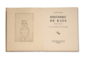 BATAILLE Georges (1897 - 1962).Histoire de rats (Journal de Dianus). Avec trois eaux-fortes d'Alberto GIACOMETTI (Paris, Les Éditions de Minuit, 1947) ; in-8 broché. Édition originale limitée à 200 exemplaires, illustrée de 3 eaux-fortes...