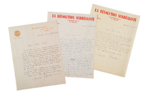 BRETON André (1896-1966).3 L.A.S. « André Breton », Paris 1925-1926, à Pierre de MASSOT ; 2, 1 et 1 pages in-4, 2 à en-tête de La Révolution surréaliste. 9 juillet 1925. Il explique pourquoi le nom de Massot ne fi gure pas parmi les...