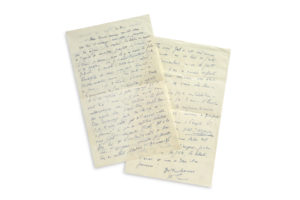 CÉLINE Louis-Ferdinand (1894-1961).L.A.S. « LFC », [Kørsør] Le 31 [décembre 1947], à son ami Georges GEOFFROY ; 3 pages in-fol., enveloppe. Il lui souhaite une bonne année, et l'encourage à venir le voir... « je te vois encore bien...