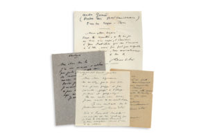 « Mes chers agneaux ». Il est contraint d'annuler ses rendez-vous avec le couple : « Cette fois encore impossible d'être des vôtres samedi. Je le regrette mais la période est très troublée »... « Ne comptez pas ce soir sur moi. Je suis grippé et pas sortable »... Etc. 23 25 24 32 33 les collections aristophil littérature 27 CHATEAUBRIAND François-René de (1768-1848). L.A., Val de Loup mercredi minuit 10 juin [1812], à la duchesse de DURAS ; 4 pages et demie in-4. Belle et longue lettre au sujet de sa situation fi nancière, et des pamphlets et attaques contre lui. [Venait de paraître une nouvelle édition du pamphlet de Cadet-Gassicourt, Saint-Géran ou la nouvelle langue française, suivi de la parodie Itinéraire de Lutèce au Mont-Valérien, auquel Hoff mann a consacré trois feuilletons du Journal de l'Empire]. « C'est un singulier entêtement à vous, chère sœur, de ne pas vouloir croire à ce que je vous dis sur mes aff aires ! Je vous assure qu'elles ne sont pas plus mauvaises que je ne vous le dis. 15,000ll les arrangeroient parfaitement, exceptant toutefois les 10,000 francs de Mde de coislin prêtés pour trois ans et dont je fais la rente à 7 1/2 pour cent sur la caution de M. de tocQueVille ; et les 20,000 francs hypothéqués de tous temps sur la Vallée et dont je paye la rente à 6. Ces deux rentes font sur mon revenu une diminution de 1,600 francs, trois actions ajoutées à nos actionnaires couvriroient ce défi cit. Il n'y a donc de très urgent que les 15,000 francs des libraires. Cette somme étant éparpillée sur la place en billets négociables, quand ces billets me rentrent, il faut les payer ; et comme je n'ai pas les fonds je suis forcé de les emprunter à un intérêt de 50 et 60 pour cent. À ce jeu là le capital de la dette se trouvera doublé dans un an, quadruplé dans deux &c... Et tout cela il n'y a pas de ma faute. Ce sont les fruits d'une banqueroute de libraire ; je suis d'ailleurs si bien dans mes aff aires, qu'en abandonnant à lenorMAnt la dernière édition de l'Itinéraire, j'ai payé une masse de dette de 54,000 francs. Vous voilà, chère sœur, satisfaite sur ce point ; mais je crève d'écrire tout cela. Vous aurez vu par vos journaux que la bataille que je vous avois annoncée est commencée. La rage est à son comble contre moi. Toutes les gazettes ont ordre d'entasser injures sur injures. C'est le fruit de mon obstination à ne pas vouloir prononcer un second discours. On dit aussi qu'il est bon d'occuper le public de quelque chose ; et on me fait l'honneur de regarder mon nom comme une diversion aux grandes scènes de l'Europe. Ne soyez pas trop malheureuse de tout cela. Je me renferme dans ma vallée avec l'estime des honnêtes gens. J'opposerai le silence et le mépris aux apothicaires qui font des Parodies et aux Bouff ons qui font valoir les œuvres des apothicaires. Car vous ne savez peut-être pas que l'auteur de ces Parodies est un nommé cAdet-GAssicourt, Apothicaire de S.M., et son commenteur M. HoFFMAn. J'avoue cependant que je suis un peu las de cette vie passée au milieu des orages ; et que je tourne quelquefois les yeux vers une patrie où je pûsse achever en repos le reste de mes jours. Vous sentez aussi que si je ne dois pas renoncer à écrire, je dois du moins renoncer à publier, et laisser le champ de batailles aux laquais qui y fi gurent. Tout cela tournera au profi t de l'histoire, et la journée de demain ne sera pas écoulée, que la première page de ce grand tableau ne soit tracée. S'ils savoient ce qu'ils font par ces ignobles persécutions, ils ne seroient peut-être pas si empressés. J'ai toujours craint, chère sœur, de vous envoyer quelques vers de ma tragédie [Moïse]. J'ai mes raisons pour cela. Vous verrez les cinq actes au mois d'août. Cela vaudra mieux. [...] Bonsoir chère sœur. Encore une fois ne vous affl igez pas pour moi. Songez que je suis désormais hors de pareilles atteintes ; et qu'elles ne déshonoreroient que ceux qui les portent si ces gens-là pouvoient être déshonorés ». Correspondance générale, t. II, n° 567.