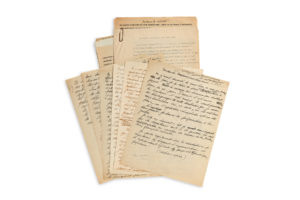 poème sur la paix, il va énumérer des témoignages de barbarie en France, « car l'agitation xénophobe est un des plus grands facteurs de préparation à la guerre »... [Avril 1949]. Commémoration du 18e anniversaire de la République espagnole. « La situation mondiale actuelle donne à toute la lutte révolutionnaire que le peuple espagnol a soutenue et continue de soutenir un sens que nous ne devons jamais oublier. Elle nous montre, plus présente que jamais, la nécessité de lutter »... Ce pays soumis à un régime autoritaire a une « permanence révolutionnaire »... [Vers 1948-1949 ?]. Hommage à la Roumanie, à sa participation aux fédérations mondiales, son activité culturelle pénétrée de « l'esprit créateur propre à l'internationalisme prolétarien », sa contribution à la connaissance réciproque des peuples. Il souhaite que le « peuple libre » de la Roumanie ne se laisse pas intimider par l'étranger, notamment le gouvernement français « aux ordres de l'impérialisme américain », de « la guerre et de l'oppression capitaliste »... On joint 4 fragments autographes ou dactylographiés avec corrections autographes (dont une note autogr. sur la justice révolutionnaire) ; le tapuscrit de son intervention à Wroclaw (compte rendu à la Mutualité à Paris, 23 novembre 1948), et le tapuscrit d'une allocution de Pavel Buncák présentant Éluard en République tchèque (1950 ?).