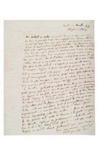 FLAUBERT Gustave (1821-1880).L.A.S. « ton G. », [Croisset] Nuit de mardi [14 juin 1853], à Louise COLET ; 4 pages in-4, enveloppe avec cachets postaux et sceau de cire rouge annotée par Louise Colet. Longue et magnifique lettre sur l'avancement...