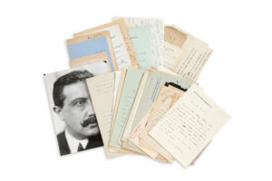 BANVILLE (2, à Jules Adenis), Henri BARBUSSE (signée « Henri de Barbusse », 1894), Maurice BARRÈS (2, à Maurice Pottecher), Pierre BENOIT (3, une à Maurice Pottecher), Francis CARCO (3, deux du front et une à Robert Kemp), François COPPÉE (quatrain), Léon DAUDET, Roland DORGELÈS (2, à Robert Kemp), Édouard DRUMONT (et fragments d'article), Georges DUHAMEL (à Robert Kemp, évoquant l'« édition brûlée » de Lieu d'asile), Alexandre DUMAS fi ls (2, une à Victorien Sardou), Alfred FABRE-LUCE, Paul FORT, Paul GÉRALDY, Edmond de GONCOURT, Fernand GREGH (à Maurice Pottecher), Augusta HOLMÈS, Eugène LABICHE (à Péragallo), Émile LITTRÉ, Pierre LOUŸS (à André Lebey, défauts), Aurélien LUGNÉ-POE, Maurice MAETERLINCH (déchir.), André MAUROIS (2), Paul MORAND, Jean MORÉAS (2, dont des vers), Vincent MUSELLI, Élisée RECLUS, Henri de RÉGNIER (10, à Maurice Magre, Édouard Dujardin, etc.), Jacques RIVIÈRE, Romain ROLLAND, Jules ROMAINS, Maurice ROSTAND, Charles SAINTE-BEUVE, Jean SCHLUMBERGER (sur Proust), Marcel SCHWOB (2, à Maurice Pottecher), Philippe SOUPAULT, WILLY (4) ; et une photo de Bernanos.
