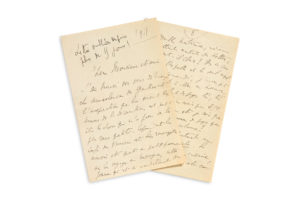 envoyé son recueil Hommage à Théophile Gautier et Proust a trouvé ces vers délicieux : « La somnolence de Gautier et l'inspiration que lui versent les Muses de la décoration est peut'être la chose qui m'a paru de la plus rare qualité. Cependant le Café de Venise est bien remarquable aussi et quant au petit poème sur le Voyage en Espagne, cette forme qui est si essentiellement de cette époque et qui donne au goût quelque chose d'équivalent à une saveur acidulée par la perpétuelle impression que les vers ne riment pas (ce qu'on a si souvent chez Musset) il est peut'être ce que je préfère »... Il regrette cependant l'absence du baron de Sigognac, héros du Capitaine Fracasse, « l'œuvre de Gautier que je préfère ». Il lui demande ensuite des conseils pour la publication d'À la recherche du temps perdu : « Mon roman (?) se composera à peu près de 2 volumes de [650 barré] 700 pages chacun. Peut'être le second n'en aura que 600, mais je ne peux pas arrêter le 1er à la moitié juste. Croyez-vous qu'un ouvrage en 2 volumes soit exécutable par Fasquelle ou autre. Ou faudrait-il mettre 2 titres. Un titre général et au dessous I et un 1er titre pour le 1er volume, et un autre titre pour le second volume (comme L'Orme du mail, l'Anneau d'Améthyste) ou même cinq volumes de 300 pages un par partie. Enfi n vous qui êtes si expert en belles impressions, et sans chercher du tout la beauté pour ce livre, mais la possibilité qu'il soit lu sans fatigue, la clarté de l'impression tient-elle à ce qu'il y a peu de lettres dans chaque ligne et peu de lignes dans chaque page ? Ainsi la Double Maîtresse (Mercure) est très facile à lire, Salammbô (Fasquelle) impossible. [...] quoique Fasquelle est le seul auquel je sois recommandé, j'aurais peut'être intérêt à aller au Mercure car il me faut des pages très, très pleines ; pour n'en avoir que 650 dans le 1er volume et je crois que c'est le maximum de pages que puisse avoir un volume ? [...] Au p[oin]t de vue de l'ouvrage, ce que je préférerais ne pouvant avoir un volume de 1300 pages serait 2 volumes de 650. Tout de suite après 2 titres (que j'aimerais moins qu'un ouvrage en 2 volumes. (Ce serait 2 volumes aussi mais en titres séparés). Enfi n une multitude de volumes (un par partie de 300 pages) est ce que j'aimerais le moins, mais peut'être ce qui me sera imposé. Dans ce cas ne devrai-je pas exiger que chaque volume paraisse au maximum 3 mois après le précédent ? Jamais je n'oserais vous parler de tout cela si je ne savais que votre grand amour de la littérature descend volontiers jusqu'aux questions de confection du livre »... Correspondance, t. XI, p. 117.