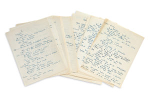 SARTRE Jean-Paul (1905-1980).MANUSCRIT autographe pour Nekrassov, [1955] ; 43 feuillets in-4 (27 x 21 cm) sous couverture d'un bloc de papier de la marque Diane. Manuscrits de premier jet et de travail pour sa pièce Nekrassov. Cette pièce en huit...