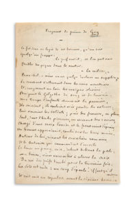 VILLIERS DE L'ISLE-ADAM Auguste de (1838-1889).POÈME autographe signé « Villiers de L'Isle-Adam », Fragment du poëme de GOG, [1882] ; 1 page et demie in-8 (petite déchirure, trace d'onglet au dos). Poème de 27 alexandrins, sur Simon de Cyrène...