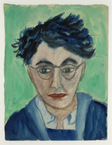 QUENEAU Raymond.Aquarelle, Autoportrait ; 32,5 x 24,5 cm à vue (encadrée). Autoportrait en buste, de face, avec des lunettes, probablement au début des années 1950. Raymond Queneau. Dessins, gouaches et aquarelles (Paris, BuchetChastel, 2003, n°...