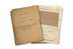 KOJÈVE Alexandre (1902-1968) et QUENEAU Raymond. TAPUSCRIT en partie autographe, Introduction à la lecture de Hegel. Leçons sur la Phénoménologie de l'Esprit recueillies et publiées par Raymond Queneau, 1946 ; 496 ff . in-4, sous emboîtage...