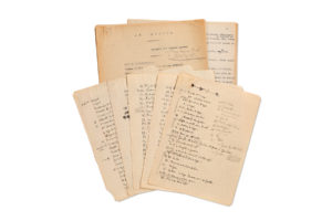 QUENEAU Raymond.MANUSCRIT autographe, Le Lendemain, [1950] ; 9 pages in-4, à l'encre noire et au crayon sur 7 feuillets de cahier d'écolier. Scénario, découpage et minutage du seul film réalisé, écrit et interprété par Raymond Queneau. Le...