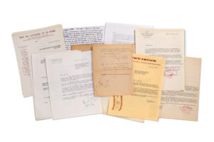 cinéma et littérature, développée à l'occasion de la parution du roman de Jean MECKERT, Nous sommes tous des assassins. Le livre fut en eff et écrit d'après le scénario du fi lm qu'André Cayatte et Charles Spaak réalisèrent sous le même titre. Celui-ci raconte l'histoire de René Le Guen, un ancien Résistant qui, après la Libération, a commis trois meurtres et, condamné à mort, attend en prison son exécution. Il revient sur son passé et les enchaînements qui l'ont conduit là. Queneau note ainsi que le fi lm se devait d'être linéaire, sous peine d'aboutir à une confusion totale, tandis que le romancier, « qui pouvait se contenter de simples indications pour certaines scènes », peut utiliser constamment le retour en arrière. De même, pour les exécutions des compagnons de cellule de Le Guen, le cinéaste doit suivre une progression dramatique, alors que Meckert adopte un ordre inverse et s'interrompt à des étapes diff érentes. Et Queneau conclut : « Ainsi nous ne lisons pas une histoire que le cinéma nous a déjà “racontée”, nous n'assistons pas à un spectacle qu'on nous a déjà décrit. Il y a deux poids et deux mesures : il y a deux arts diff érents et parallèles, et c'est là ce qui fait la grande originalité de cette tentative - qui est une réussite ». On joint le tapuscrit corrigé avec titre autographe ; plus le tapuscrit de l'article Les douze malédictions du cinéma, avec L.S. de Maurice Bessy à R. Queneau, 19 avril 1960 (en-tête Cinémonde), et un autre tapuscrit ; et la coupure de presse d'un article de Queneau dans Labyrinthe (23/12/1946) : « Le mythe du documentaire ».