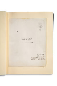 QUENEAU Raymond.MANUSCRIT autographe, Fendre les flots, 1968 ; titre et 155 pages in-4 (21 x 27 cm) montées sur onglet sur papier vélin blanc fort, reliées en un volume in-4 demi-maroquin bleu nuit à coins, plats de papier au tampon bleu marine...