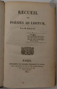 BALZAC (Charles-Louis). Recueil de poésies ad libitum. Paris : imprimerie de Madame Hérissant Le …
