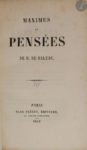- MAXIMES ET PENSÉES. Paris : Plon frères, 1852. — In-18, demi-chagrin aubergine, dos à nerfs orné, tête dorée, non rogné, couverture et dos conservés (Foiry-Dombrowski).