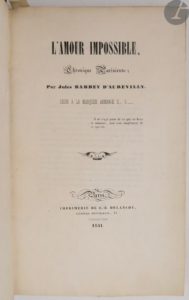 BARBEY D'AUREVILLY (Jules). L'Amour impossible, Chronique Parisienne. Paris : imprimerie de E.-B. …