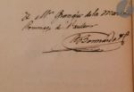 UN DES 25 EXEMPLAIRES SUR PAPIER DE COULEUR (n° 25 sur papier rose), enrichi d'un envoi autographe de l'auteur adressé au bibliophile et homme politique Louis-René-Antoine Grangier de La Marinière (1814-1882) :
